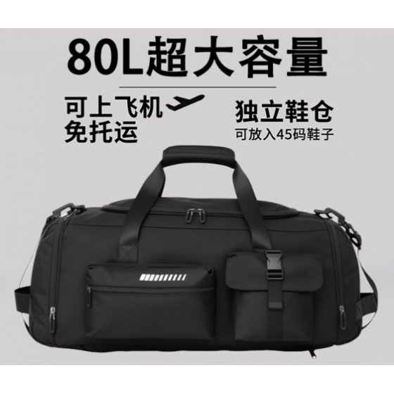 Travel fitness bag, large capacity backpack, hand-held dry and wet separation luggage bag