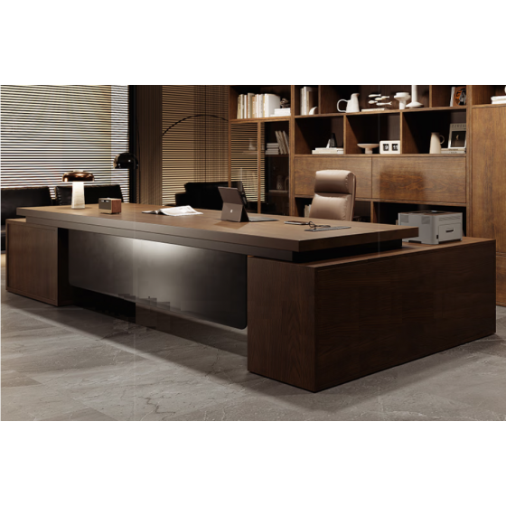 Pine and Ashwood Minimalist Modern Executive Desk (CEO Desk) Single Office Chair Set
